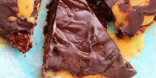 Vegansk brownie med saltkaramel og chokoladeganache